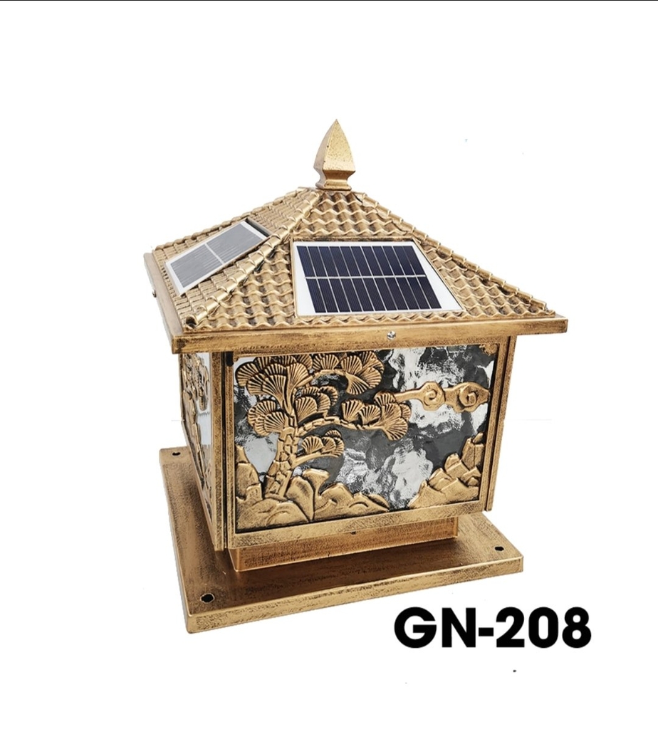Đèn trụ cổng NLMT mẫu hoa văn GN208